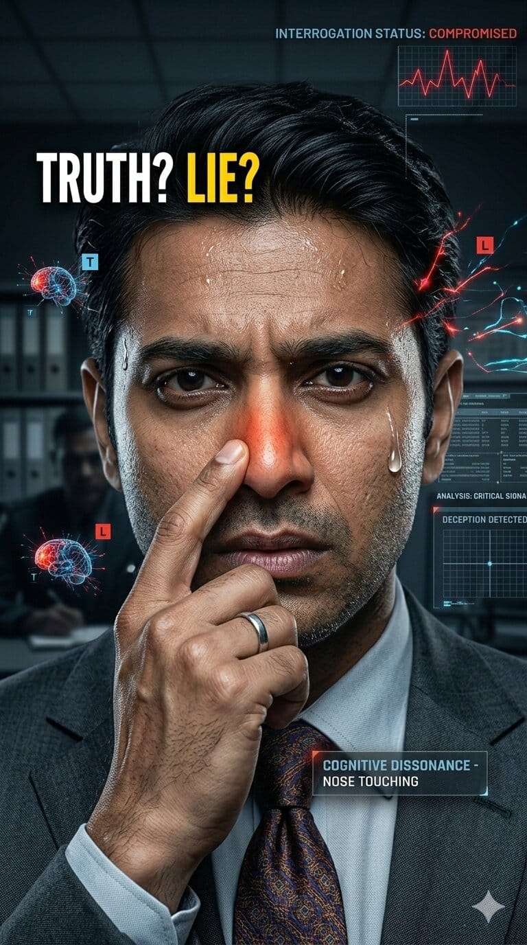 झूठ के तनाव में लोग अनजाने में मुंह या नाक को बार-बार छूने लगते हैं।