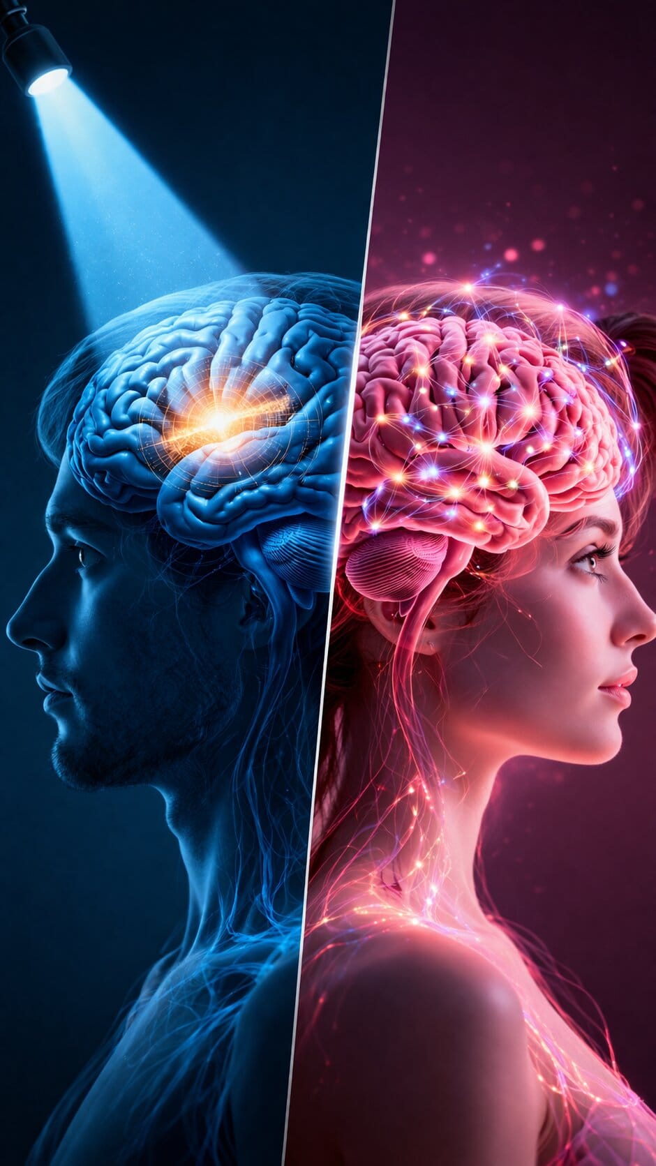 पुरुष और महिला मस्तिष्क में 100+ जीन अलग तरीके से सक्रिय। 90% जीन X/Y क्रोमोसोम पर नहीं, बल्कि हार्मोन्स (टेस्टोस्टेरोन, एस्ट्रोजन) से प्रभावित। इस कारण सोच, व्यवहार, न्यूरॉन फंक्शन और बीमारियां अलग अलग।